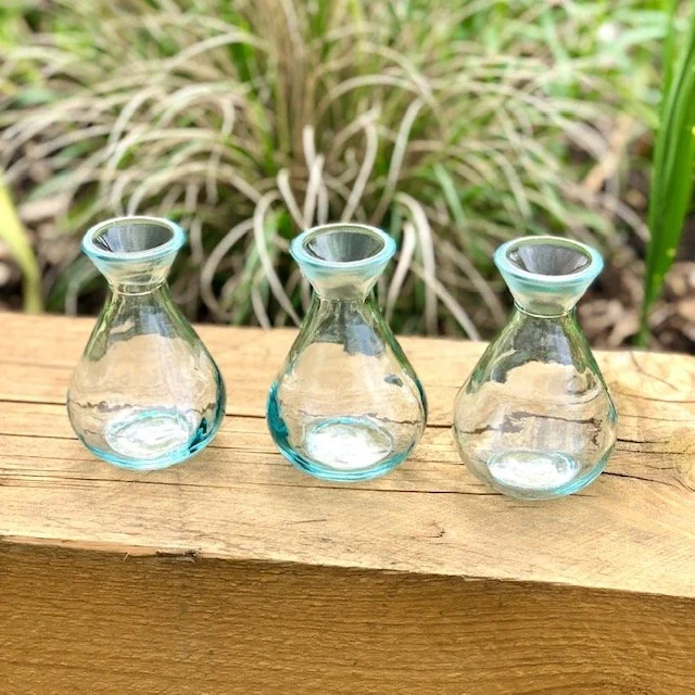 11 cm 100% recycled glass bud vases; sparkling jewels of glass.